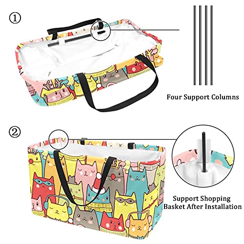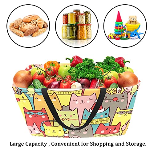 Grande borsa riutilizzabile per la spesa, resistente, con fondo rinforzato e manico (stampa natalizia con motivo colorato con gatti colorati