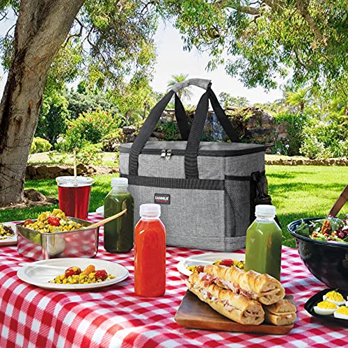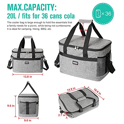 Grande borsa termica pieghevole da 20 l, a prova di perdite, borsa termica per il pranzo, riutilizzabile, per ufficio, viaggi, spiaggia, picnic, campeggio, barbecue, colore: grigio
