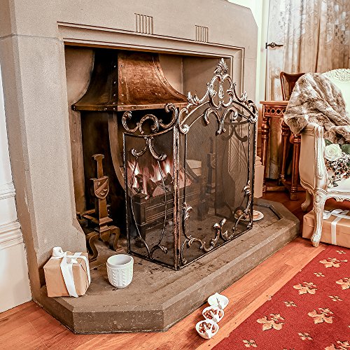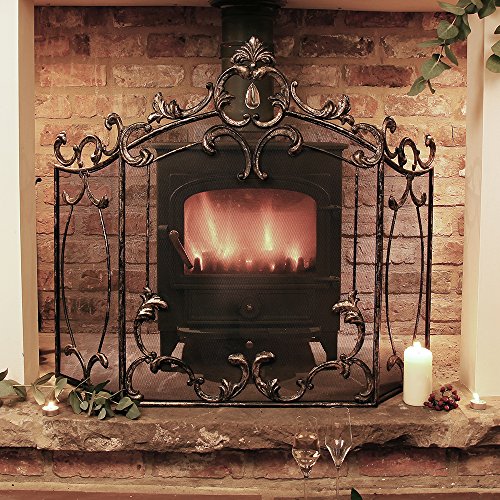 Grande bronzo antico elegante Country Manor ferro 3 pannello parascintille - perfetto per la protezione contro le scintille contro eventuali carbone o Log Fire - H 91 x W 64 cm