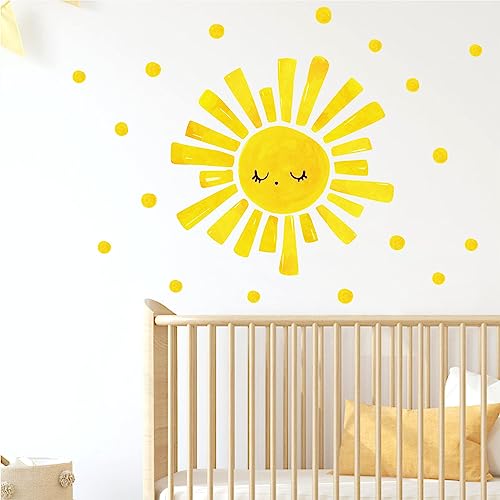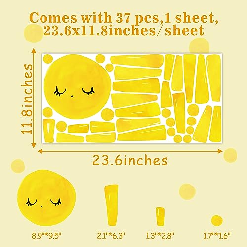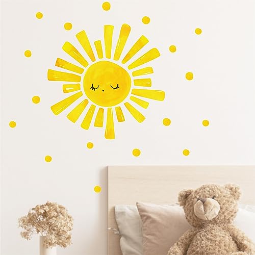 Decalcomanie da parete con sole ad acquerello: viene fornito con 1 foglio, 30 x 59,9 cm/foglio grande giallo a pois adesivi da parete.