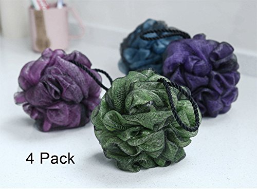 KFZR 4 Pack grande esfoliante doccia corpo doccia spugna soffice per gli uomini e le donne verde blu viola dentellare doppio strato nero strato esterno