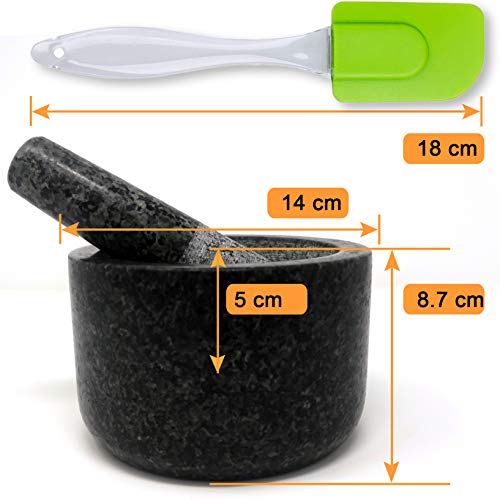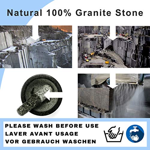 ★ Da utilizzare su due lati: il set di pestelli e mortai in granito con design unico può essere utilizzato su entrambi i lati. Grande mortaio 14cm per grandi ingredienti e verdure e più piccolo 10cm Mortaio sul fondo per cereali, spezie e noci.