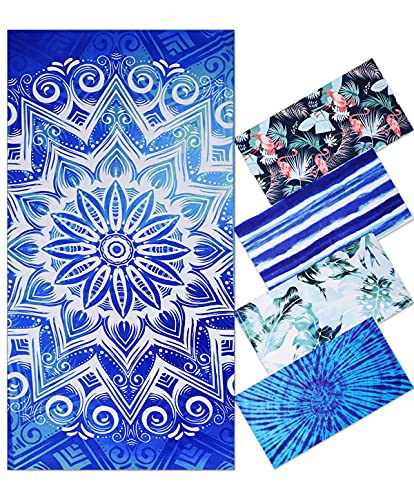Telo Mare Grande in Microfibra Antisabbia Donna, 180x90cm, Sottile Teli Asciugamano Mare con Elastici Estathe, Asciugamano da Spiaggia One Piece, Fantasia Mandala, Blue