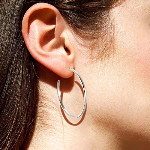Grande Orecchini a Cerchio Mezzo Piatto di Perno per Donna in Argento Sterling 925 - Diametro: 36 mm