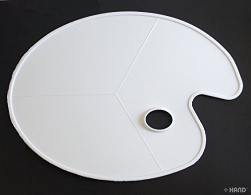 A white plastic strong palette for artist's paint. Durable and easy to clean.