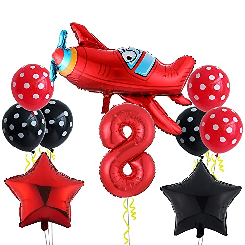 Grande palloncino a forma di aereo, decorazione di compleanno per 8 anni, decorazione per bambini - numero 8 palloncini, XXL, palloncino a forma di stella, palloncino a pois per aereo