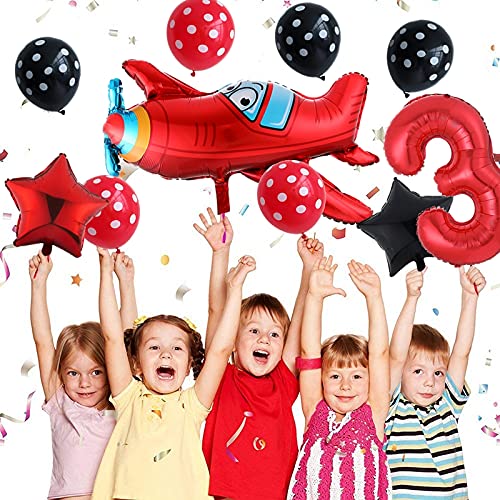 Grande palloncino a forma di aereo, decorazione per il compleanno di bambini 3 anni, decorazione per bambini - numero 3 palloncini, XXL, palloncino a forma di stella, palloncino a pois per aereo