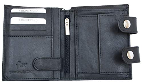 FLW Grande portafoglio biker nero in vera pelle con catena in metallo