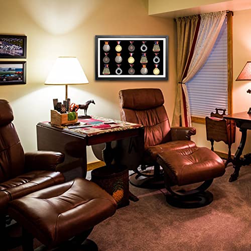 Grande scatola per medaglie, espositore per 15 medaglie, cornice perfetta per medaglie, per eserciti di guerra, corridori, maratone, vincitori di RECE, calcio, ginnastica e tutti gli sport (nero)