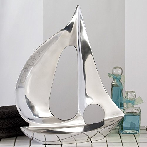 Grande Scultura XXL Barca Oggetto Metallico Nave Alu Color Argento