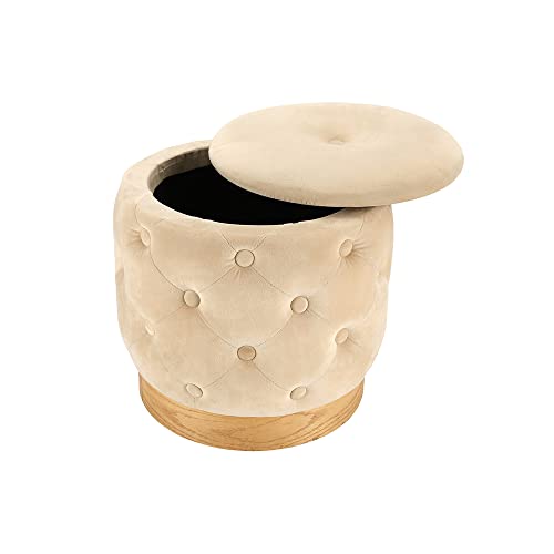 JSMY Grande Sgabello Rotondo di Lusso in Velluto con Coperchio Sgabello a Forma di Cilindro Ripostiglio Pouf con Base in Legno Contenitore Pouf per Famiglia Regalo Camera da Letto (Punto Croce Beige)