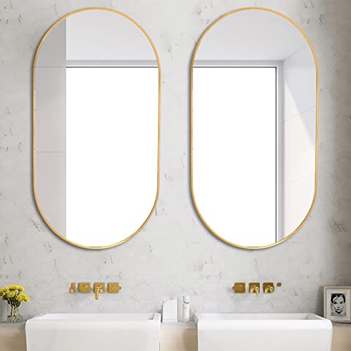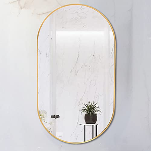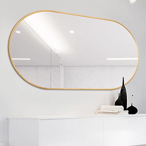 Grande Specchio da Parete, Specchio da Bagno Ovale, Specchio da Toeletta Nero/Bianco/Oro con Cornice in Metallo, per Appendere Verticale E Orizzontale, Ideale per Camera da Letto, Bagno (Color: Gold