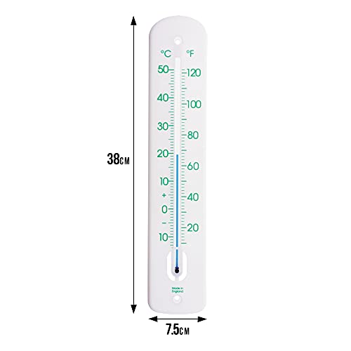 Termometro essenziale per il giardino: un termometro extra large da 380 mm per interni o esterni con scala di temperatura chiara e facile da leggere. Questo grande termometro è ideale per l'uso dentro e intorno al giardino, nella serra, nel capannone per misurare la temperatura dell'aria corrente.