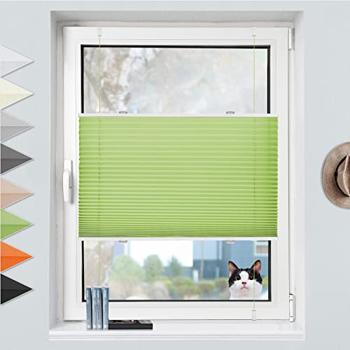 Grandekor - Tenda a rullo plissettata montaggio senza viti con morsetti e protezione solare, Tessuto, verde, 50x130