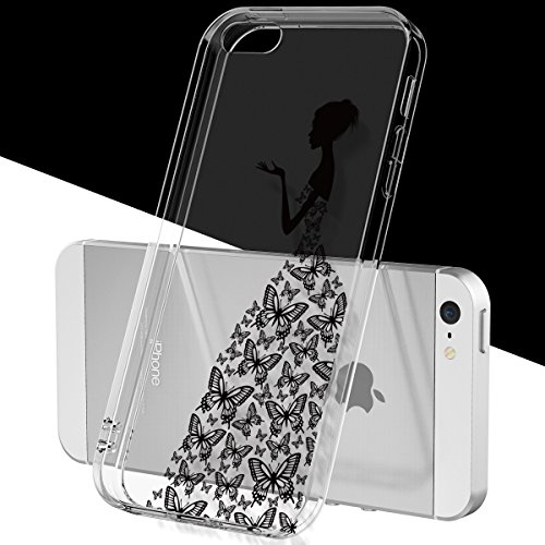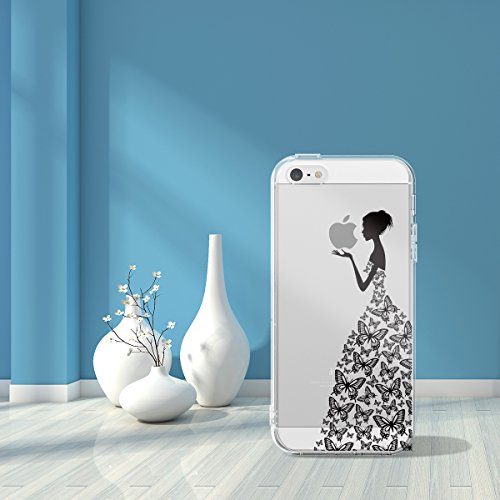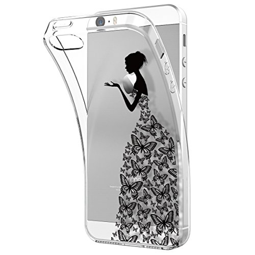 GrandEver Cover iPhone 5/5S/SE, Trasparente Ultra Slim Gel TPU Silicone Anti Graffio Anti Scossa Anti Scivolo Protettiva Bumper Custodia Case - Ragazza