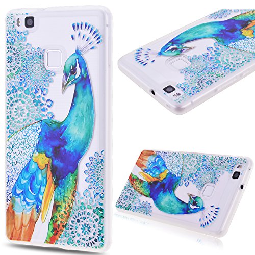 GrandEver Custodia TPU Gel per Huawei P9 Lite Cover in Gel TPU Silicone Cover Trasparente Fit Ultra Sottile Silicone Flessibile TPU Gel Shell Protettiva TPU Case Resistente ai Graffi Anti Scivolo Case Posteriore Della Copertura Della Protezione Anti-urto Huawei P9 Lite - Blu Pavone