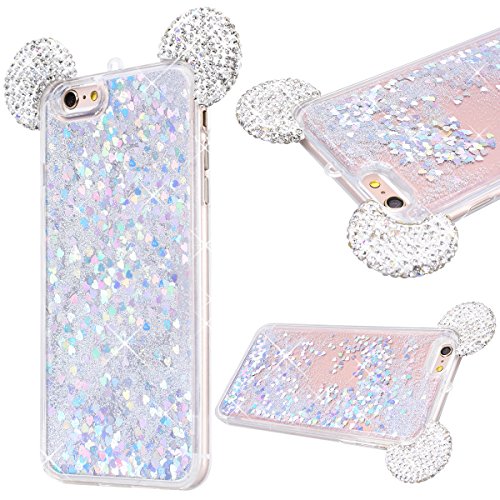 GrandEver Custodia per iPhone 6/6S, Elegante Creativo Lovely Colorful Bling Diamante Strass Orecchie di Mouse Ear con Liquido 3D Flowing Sabbie mobili Quicksand Stella Star Cristallo Crystal Scintillio Sparkle Shinny Glitter Anti Scratch Gel TPU Trasparente Protettiva Bumper Cover Case - Argento