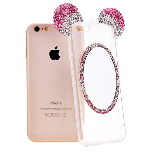 GrandEver Custodia morbida in silicone per iPhone 6 iPhone 6S TPU trasparente indietro con strass Diamante Mickey Mouse Orecchini progetto, iPhone 6 Bumper in TPU per cellulare Iphone 6S custodia con strap gel skin Rubber flessibile boccola trasparente in gomma sottile Custodia tasche per iPhone 6/iPhone 6S (4.7)
