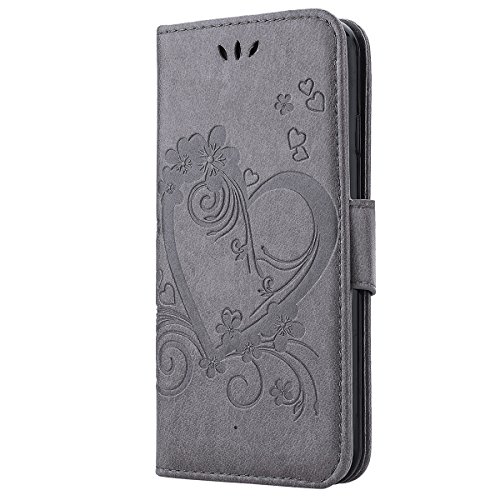 GrandEver Custodia PU Pelle per iPhone 6 iPhone 6S (4.7) Custodia Pochette portatile Flip Wallet Custodia abito fiore ragazza gatto nero Mignon alla moda, stile Case Porta carte caso Back Cover morbida chiusura magnetica e funzione Protective Slot di carte, pennino per schermo touch e anti-polvere Pellicola protezione} grigio