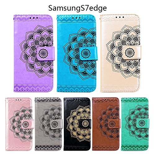 GrandEver Custodia per Samsung Galaxy S7 Edge in Pelle Magnificamente Fiori Pattern Anti-Scratch Premium PU Leather Magnetico Flip ID Slot per Scheda Wallet Case Protettiva Cover - Marrone