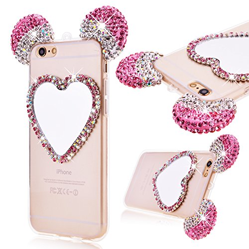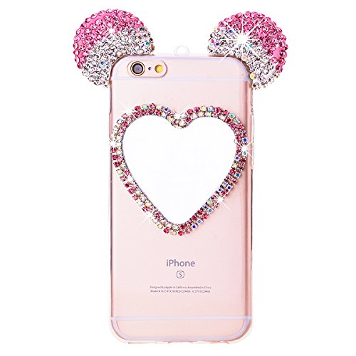 GrandEver Morbida custodia in silicone per iPhone 6 Plus/6S Plus in TPU trasparente con strass sul retro e orecchie da Mouse, custodia protettiva con cinturino da polso, in gomm