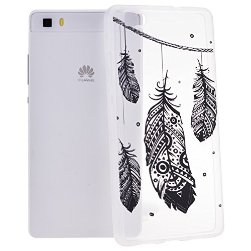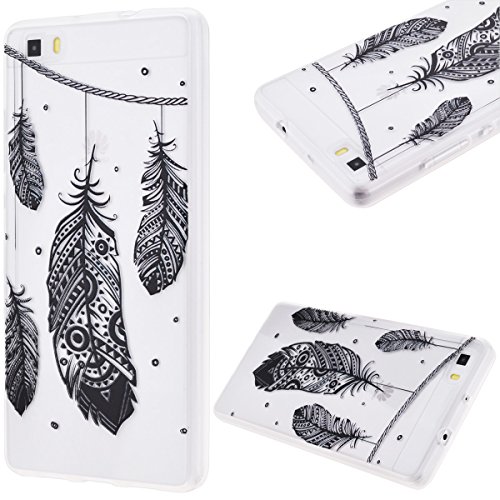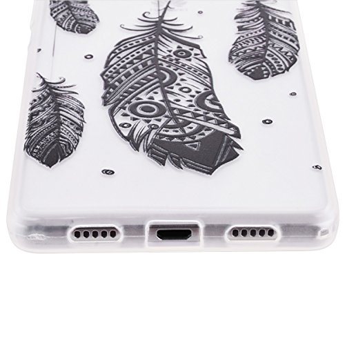 GrandEver Morbido Cover per Huawei P8 Lite, Sottile TPU Trasparente Back Case Bumper con Disegno Speciale, Custodia in Silicone Flexible Soft Protettiva Coprire - Piuma Tribale