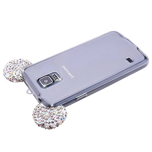 GrandEver con strass per Samsung Galaxy S5/S5 Neo Custodia protettiva in TPU morbido diamante 3d diy mouse Ear Design Bling Trasparente Retro glitterata Shiny lucido Sparkle Clear lucido cristallo trasparente trasparente Custodia con Strap Case Cover Custodia Back Cover - Bianco