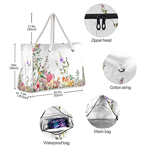 Grandi Borse Da Spiaggia Totes Tela Tote Borsa A Tracolla Pittura Astratta Primavera Multicolore Fiori Borse Impermeabile per Palestra Viaggi Quotidi