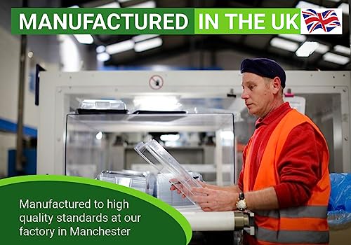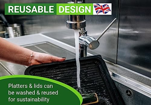 10 x grandi piatti di plastica per buffet e catering, con coperchi + 1 piatto rettangolare per alimenti con base effetto vetro