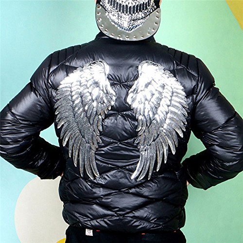 1 paio di grandi toppe a forma di ali d'angelo, con paillettes, da applicare con il ferro da stiro o cucendole, motivo ricamato per abiti fai da te, Argento, 33cm*18cm(13inch*7inch)
