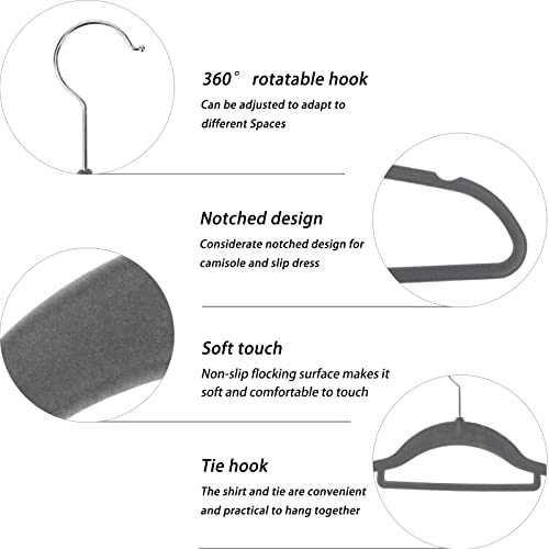 GRANDMA SHARK Appendini in Velluto, Salvaspazio con Barra Centrale per Cravatte e 360° Gancio, Adatto per Cappotti, Giacche, Abiti, Bretelle (Grigio, 50)