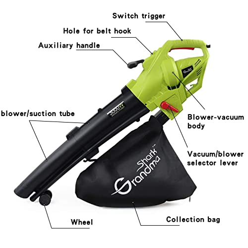 Grandma Shark Soffiatore di fogli elettrico, soffiatore, grande diametro del fusto, aspirapolvere di fogli elettrici (verde)