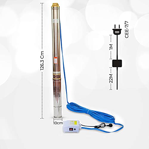 Grandmaster - Pompa Sommersa Per Pozzo 1500W/2HP, 10.62m3/h, Acciaio Inossidabile, Profondità Massima 84m, Cavo 22m, 2850RPM, IP68, 21 Giranti In Plastico