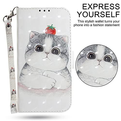 Grandoin Custodia per Samsung Galaxy A71 5G, Antiurto Flip Caso in PU Pelle Libro Portafoglio Slot Schede Chiusura Magnetica Custodia in Pelle Stampata 3D Cover Cassa Protettiva (Gatto Carino)