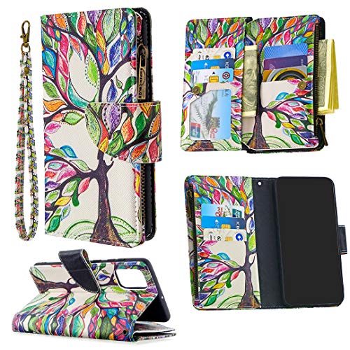 Grandoin Custodia per Samsung Galaxy A71, Creativo Colorato Custodia Retro Cerniera Flip Case Portafoglio Pelle Wallet Magnetica Supporto Cover Cassa Protettiva (Albero)