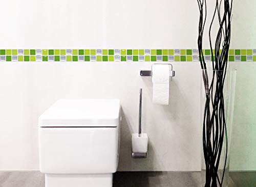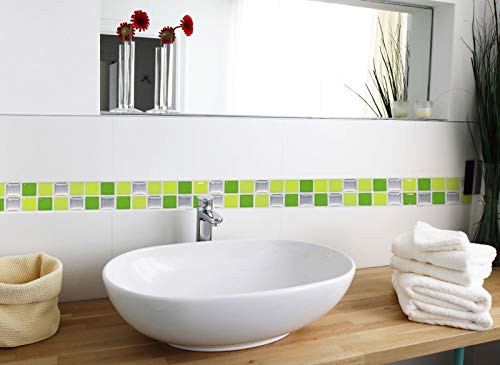 Grandora 7 Adesivi 25,3 x 3,7 cm Verde Chiaro Ecologica Argento Adesivo per Piastrelle Design 9 I 3D Mosaico Foglio di Piastrelle Cucina Vasca da Bagno Adesivo murale Decorazione Piastrelle W5288