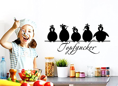 Grandora W862 Kitchen Wall Tattoo 5 Birds design con testo "Topfgucker (inglese: pot Peeper), Black, 30 x 14 cm