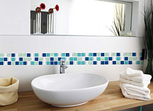Grandora Set di 4 25,3 x 5,4 cm Tile Sticker Piastrelle Blu Turchese Argento Mosaico I 3D Autoadesivo Cucina Bagno Decor Foil Adesivo murale W5195