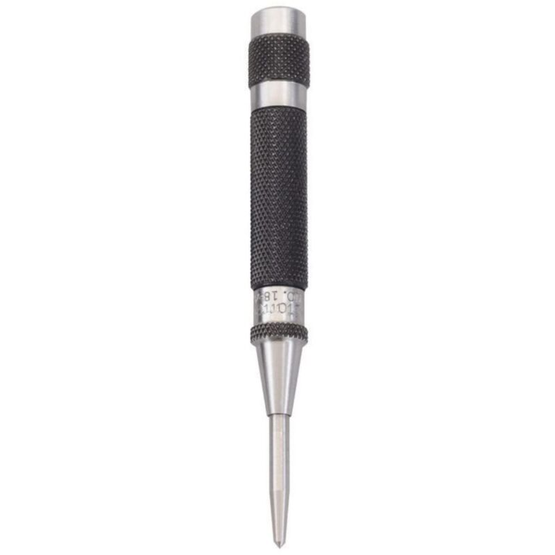 Lo Starrett automatico punzone con corsa regolabile dotato di un peso leggero, maniglia in acciaio zigrinato per una comoda presa e maneggevolezza. 100 millimetri (4 ) Lunghezza, 11 millimetri (7/16” ) Diametro