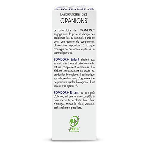 GRANIONS Somdor+ - Bambini Syrup Apricot 125 Ml - formula completa con estratti vegetali organici - Marca francese