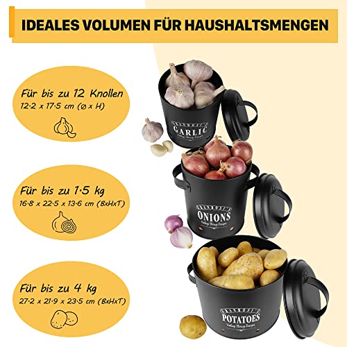 Granrosi Set di Contenitori per Alimenti - Contenitore per Patate, Cipolle e Aglio, Design Vintage, per Conservare i Vostri Alimenti a Lungo e in Grande Stile, Nero
