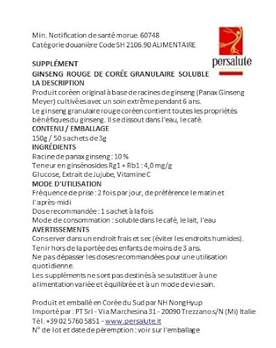Tè granulare al Ginseng Rosso Coreano, 50 bustine solubili da 3g