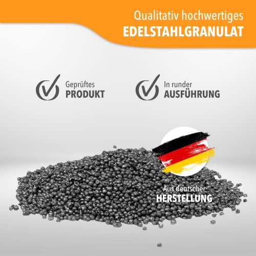 Offriamo granuli testati di prima classe, la dimensione delle particelle è di 1 - 1,7 mm, forma della grana: rotonda, peso specifico: circa 7,9 g/cm3.
