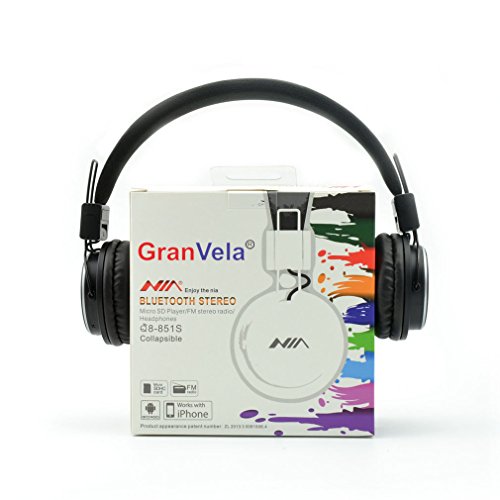 Granvela ® Q8 - Bluetooth Stereo Pieghevole Cuffie con Micro SD (TF) - Ascoltare Musica e FM Radio - Supporta jack da 3,5 mm - Nero