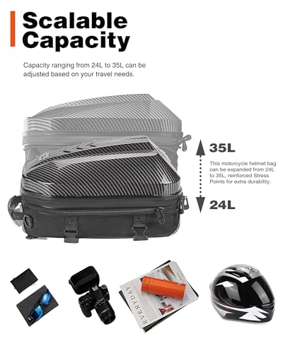 Grapelet Borsa Posteriore Moto Impermeabile Borsa Bagaglio Guscio Duro Sacca Porta Casco Moto Espandibile Volume 24L-35L Zaino Borsa Viaggio Moto