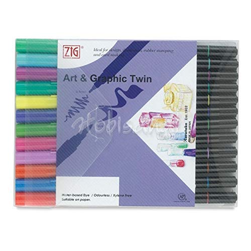 ZIG Art and Graphic - Pennarello a punta doppia, 12 pezzi, colori vivaci