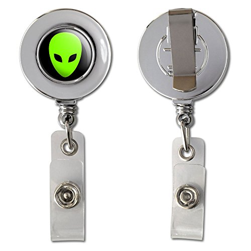 Graphics and More "testa" alieno di Roswell, Badge/ID Card IT-Clip, con cavo retrattile, colore: cromo