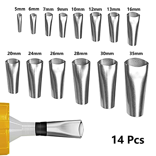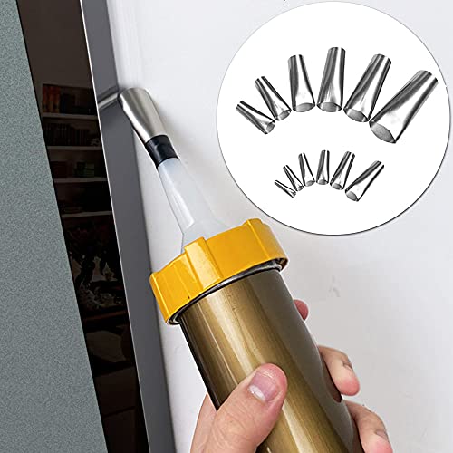 Diverse opzioni di dimensioni: gli applicatori per ugelli per calafataggio sono dotati di 14 diverse dimensioni, da piccole a grandi, adatti per strumenti ausiliari per tutte le operazioni di tenuta, fornendo un perfetto effetto di calafataggio in diverse aree e angolazioni. Può riempire efficacemente i lavori di calafataggio senza disordine.