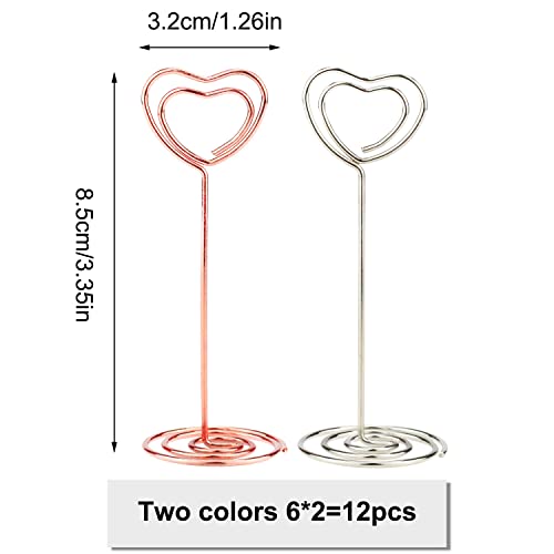 Graplan 12 PCS Cuore Segnaposto Titolari di Carta Numero di Tabella Porta Memo Foto Clip per Matrimonio,Clip portafoto,Numeri Tavoli ristorante(Argento,Oro Rosa)