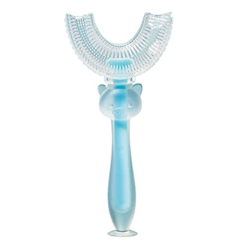 GRASARY Spazzolino da denti manuale per bambini, a forma di U, con ventosa, per bambini da 2 a 14 anni, colore: blu